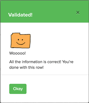 When you're building an an enterprise application for a university, the last thing your users expect is a little bit of humor. In this case, our users had to go through some data and "validate" it as correct. Not a very fun task. Perhaps it was such an un-fun task that people were extra surprised to see this happy little green modal after each successful validation.